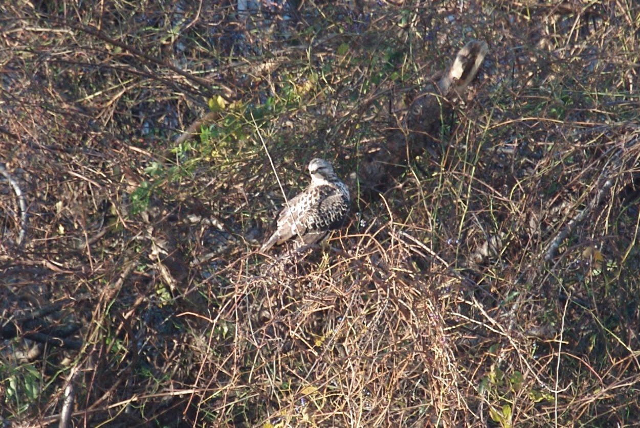 Needless to say, we were successful. While we were there, David asked a friend to show us around. Mandy Weston has been a raptor bander in Cape May for this fall's migration. The season just ended today. In any case, Mandy was kind enough to show us around, introducing us to one rare bird after another. SWAINSON'S HAWK, on your left.
